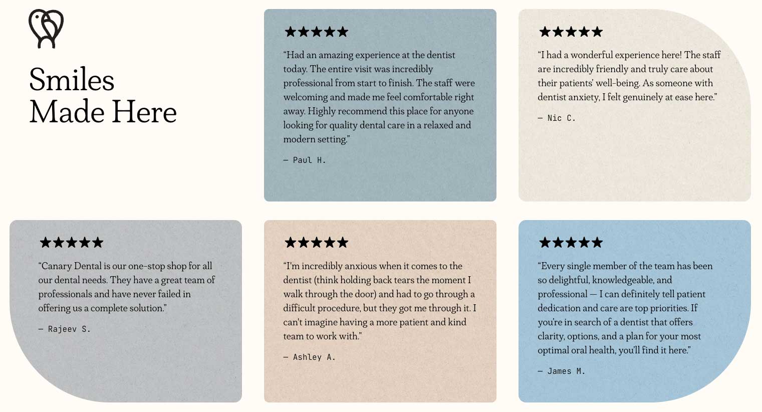 - Pull short, specific quotes that mention services, comfort, or outcomes. Those are the most believable.