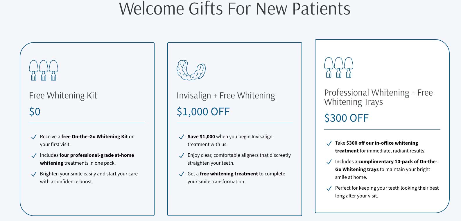 - Promote one primary offer at a time (new patient exam, whitening, Invisalign consult, etc.).