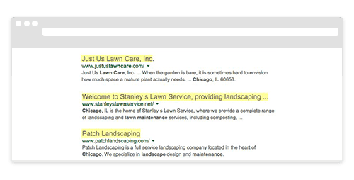 Earlier I said your meta title was invisible to customers. That’s only half true. It’s invisible when they’re looking at your page — but it’s what will show up as your page title in search results. See the yellow highlighted text below? Those are meta titles: