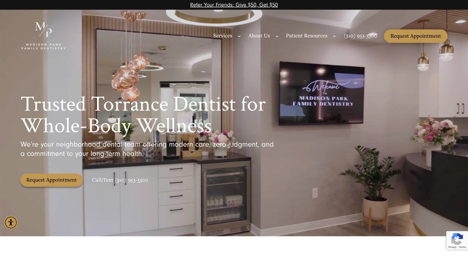 This website uses professional, modern photography that immediately conveys trust. The images feel natural, with real smiles, real care in action, and the doctors genuinely connecting with patients. Subtle décor details and clean, contemporary operatories reinforce that this is a state-of-the-art practice grounded in comfort and patient experience.
